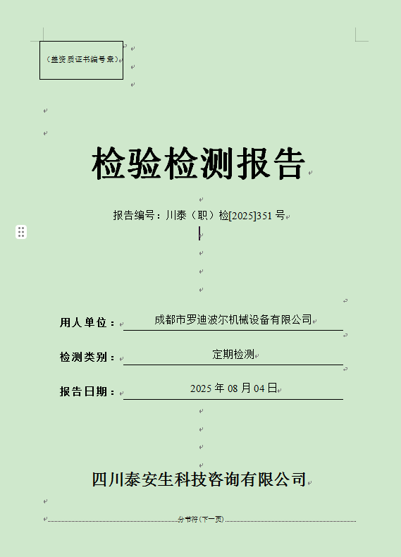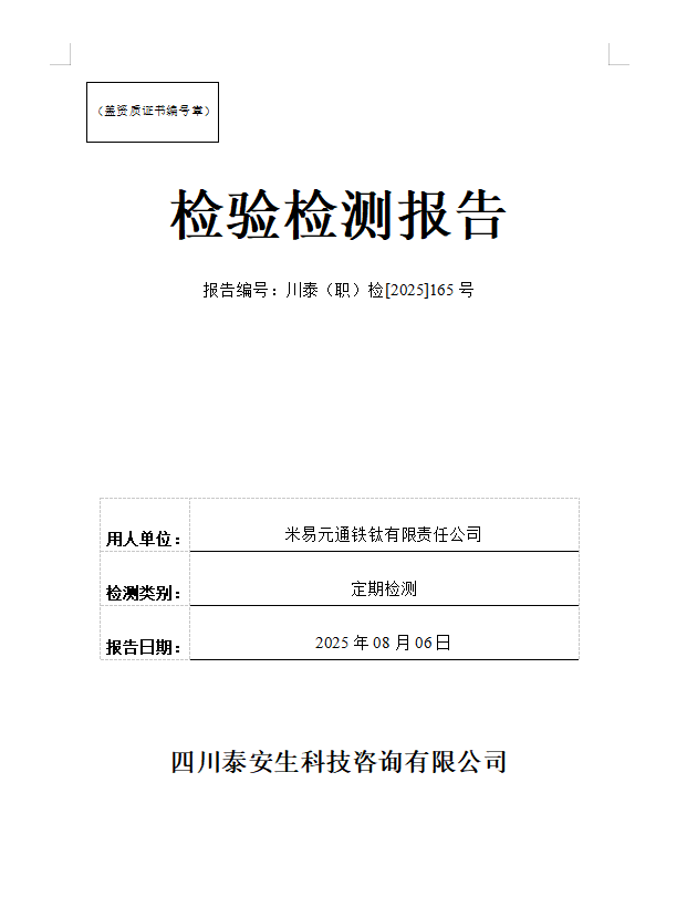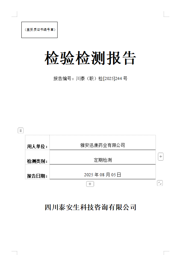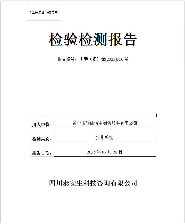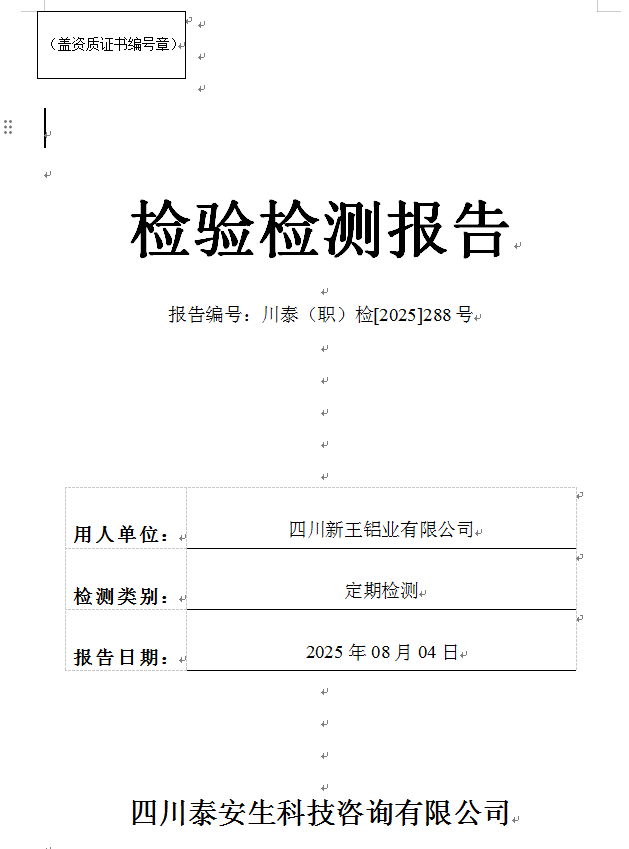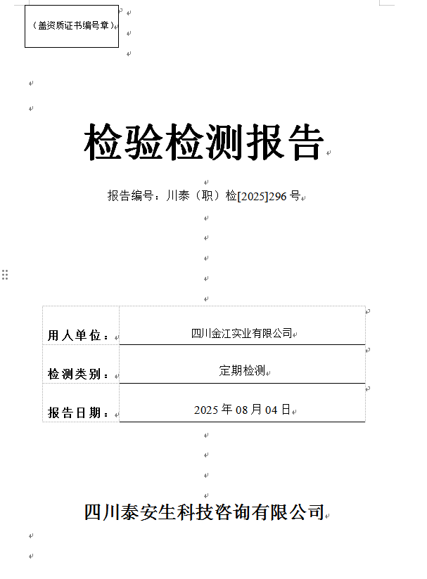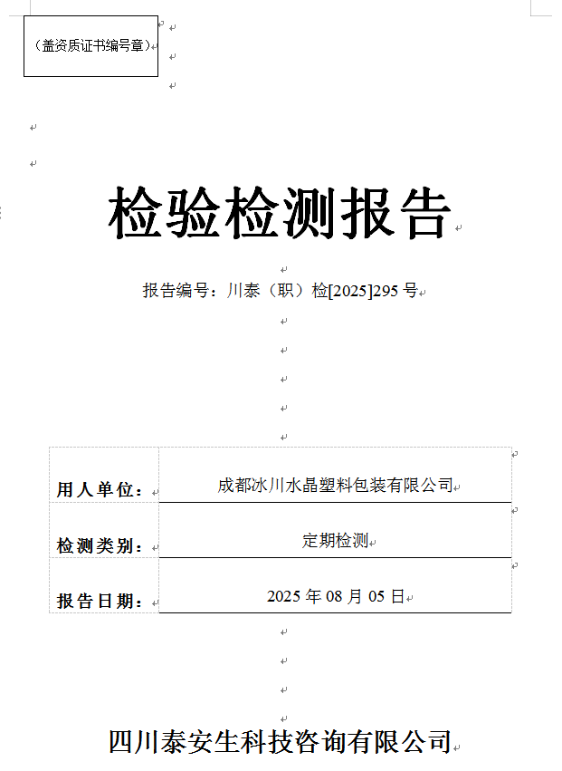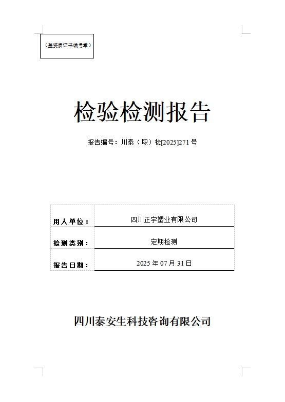 四川正宇塑業(yè)有限公司—川泰(職)檢[2025]271號