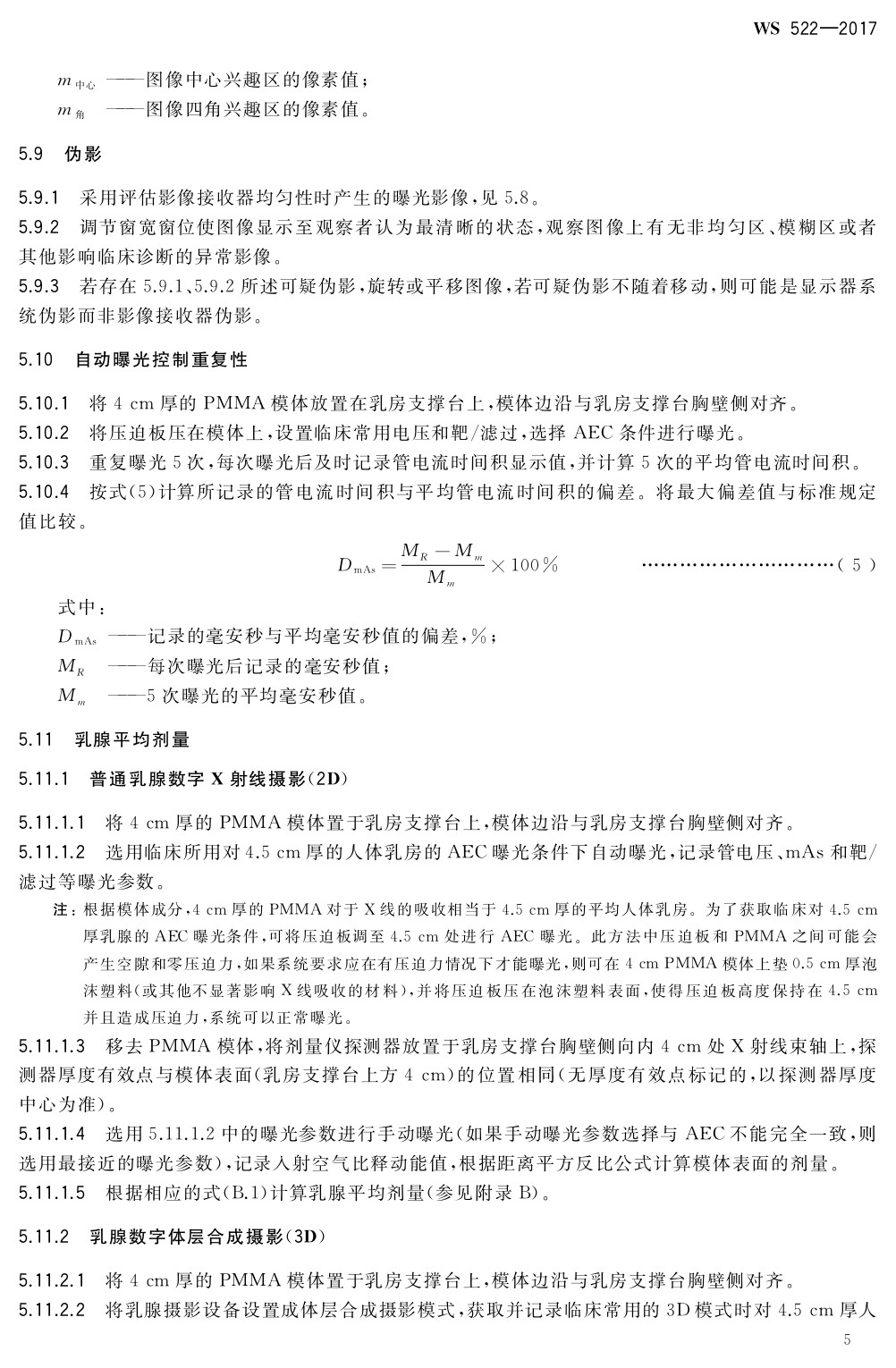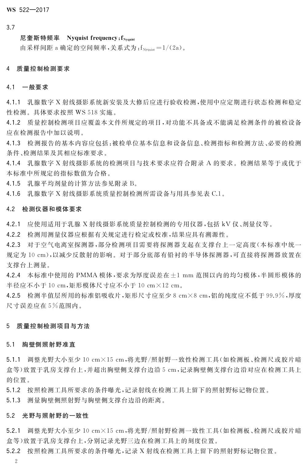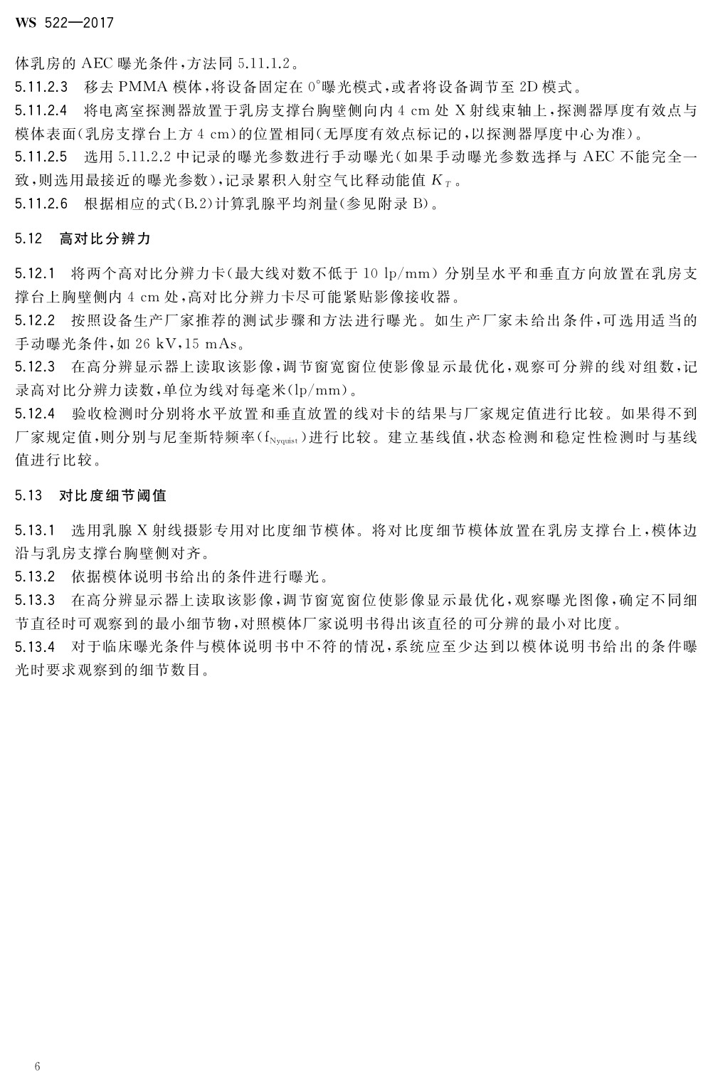 乳腺數(shù)字X射線攝影系統(tǒng)質(zhì)量控制檢測規(guī)范 WS 522-2017