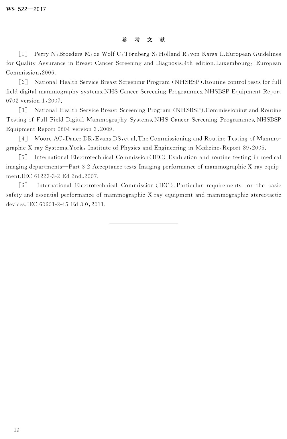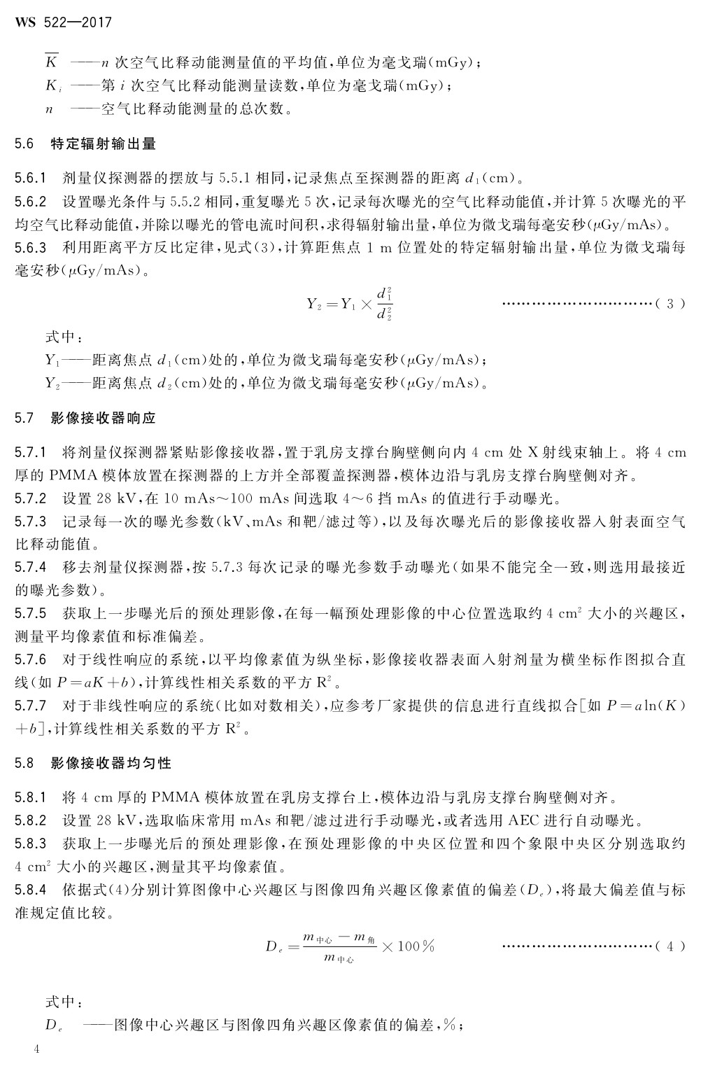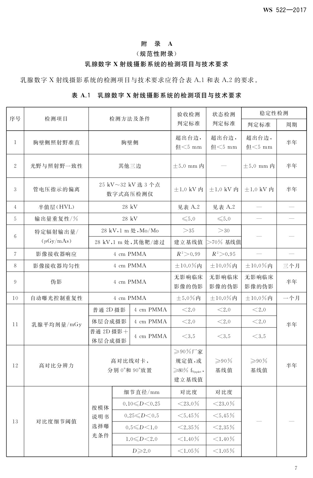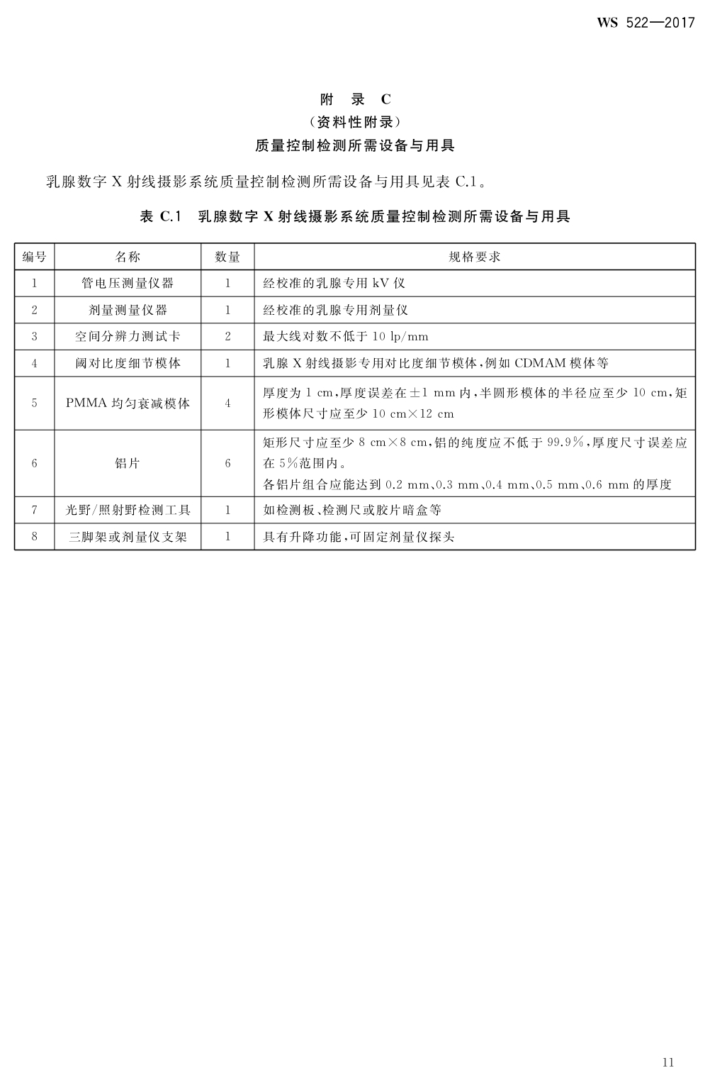 乳腺數(shù)字X射線攝影系統(tǒng)質(zhì)量控制檢測規(guī)范 WS 522-2017