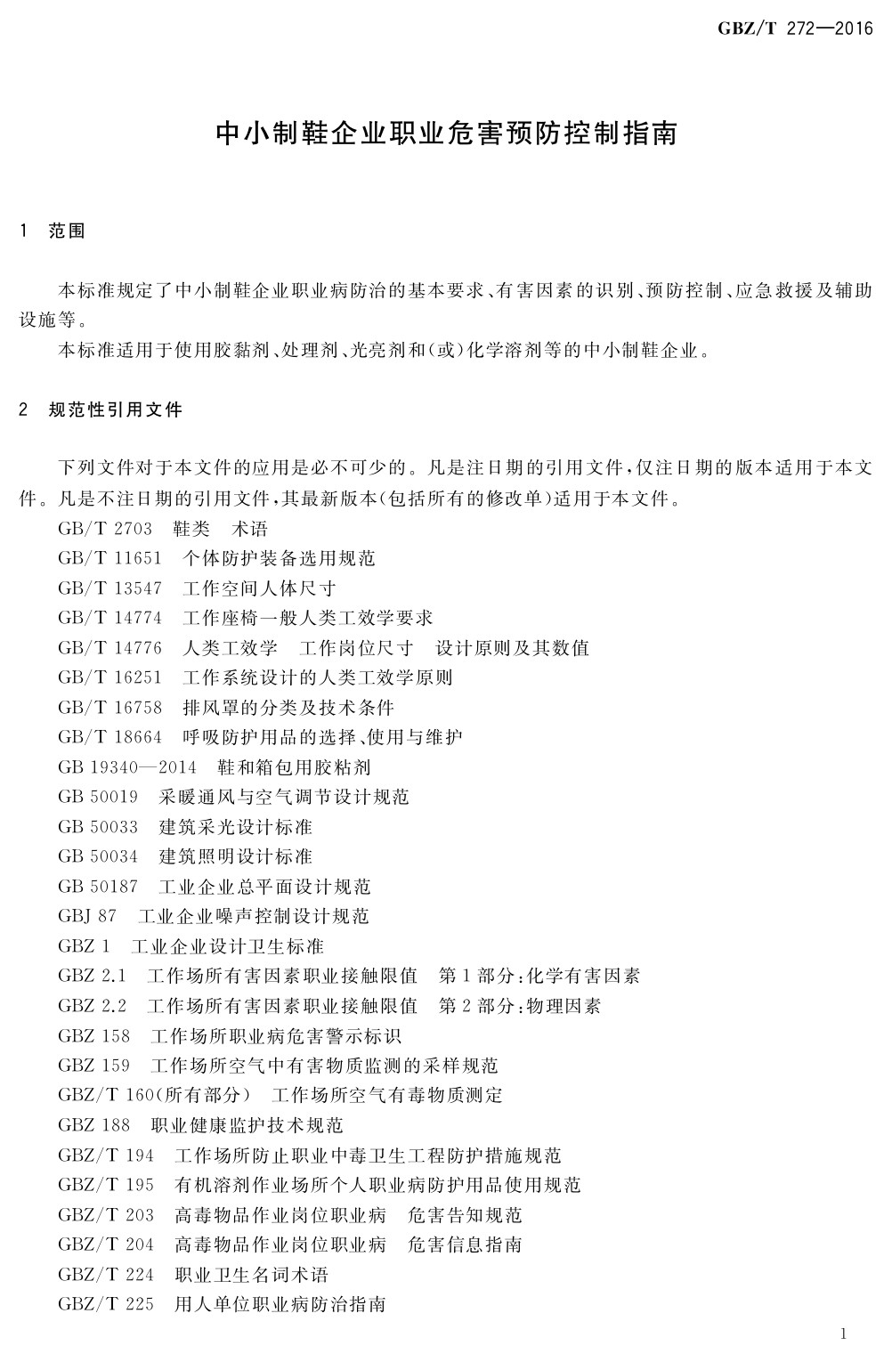 GBZT 272-2016 中小制鞋企業(yè)職業(yè)危害預防控制指南