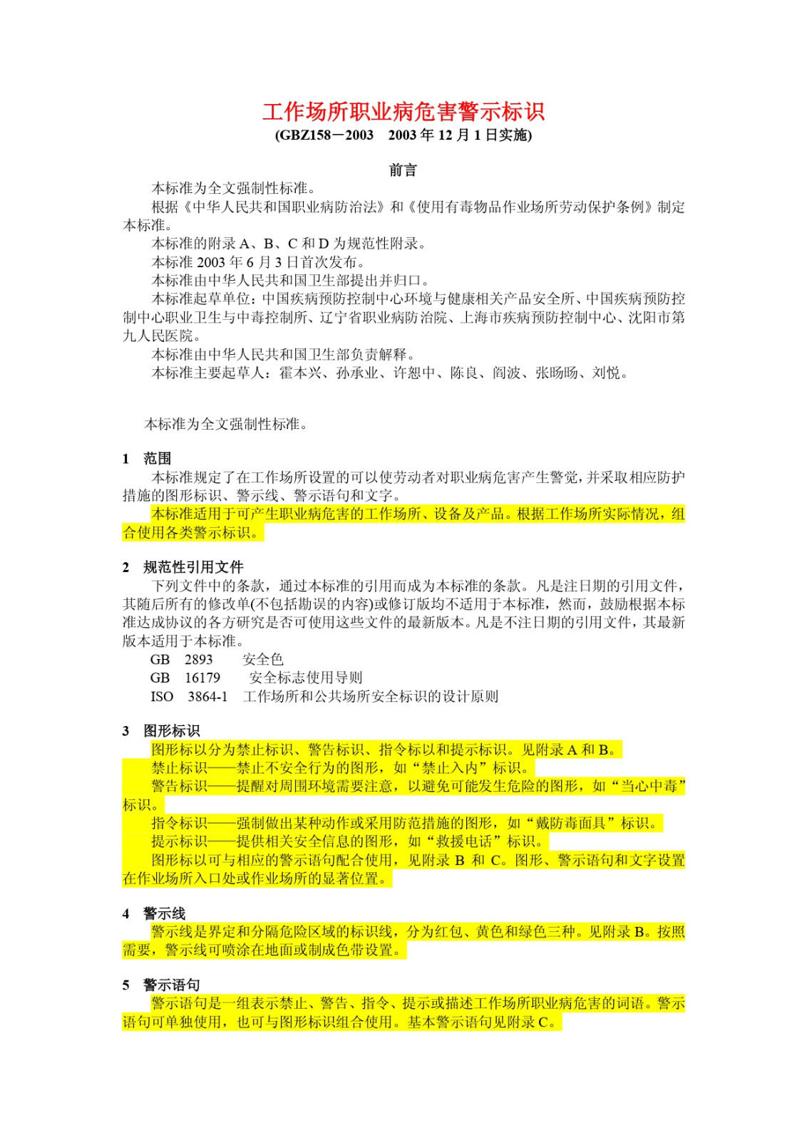 《工作場所職業(yè)病危害警示標(biāo)識(shí)》(GBZ158-2003)